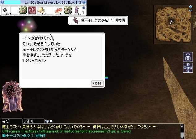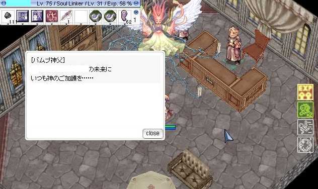 (3月2日(月)の日記です) こんばんはヾ(*'∀')ノ もう三月ってことで春はそこまでですし もう雪が降ることはないかなぁ。 今年度最後の雪は1月の後半でした。 今日友達の車に乗って高速を走ったのですが やはりスノータイヤだと乗ってるだけでも違和感ありますね。 そんなタイヤ交換代ない(*;ω;*)とかないてた友達。 ディーラーでするからお金かかるんでしょうけど 中古屋さんみたいなとこだと無料だったりしますよね。 しかし私もそんな仲がいいわけではないので 紹介は出来ませんでした(ノー`) バイク屋のおっちゃんとは仲いいんだけど(。・ω・)(・ω・。)ネー さて今日のRO 最近は近々舞を本気であげるための 充電期間兼♂アカウントのサブキャラ育成です。 こんなFFにでてくるような立ち絵もついていたんですね。 このクエストはなかなか良かったです。 しかし勝手に人のキャラを話させないで欲しい(ノー`) ご加護をー.+゚ヽ(*´∀`)ノ.+゚ そしてついに80になったので 狭間にいけるようにモロク魔王クエストです。 さぁこの運の要素が非常に強いクエスト。 一体いつ終わらせることが出来るのか?ヾ(*'∀')ノ 舞の第二狩場の下準備も忘れません さぁこのSSからどこの狩場になりそうか分かるかな?(ΦωΦ) そして夜寝る前にログインしてみると 狭間2にはいることできクエストも そのまま無事に終わりましたヾ(*'∀')ノ 何か絶対早く終わらせたいキャラのときは 終わらなかったのに(・э・) ってことでリンカー狭間に入れるようになりましたヾ(*'∀')ノ リンカーは転生できないので 今日はクエストをたくさんしました。 EXP入る直前で止めて教範使ってなるべく 多くのEXPもらえるポイントを練り歩きました。 したクエストは MSS全話 歴史学者 レッケンベルのアルバイト モスコビア 泣き虫のミハイル Z団 聖域 運命のカラス ってとこですね。 Z団で料理がいるところで料理が露店においてなくて 自力で料理クエストからしてモロク果実酒を 作成したのがつらかったです(ノー`) お金もかかっちゃいました。 今日はここまで じゃあの(・ω・)ノ