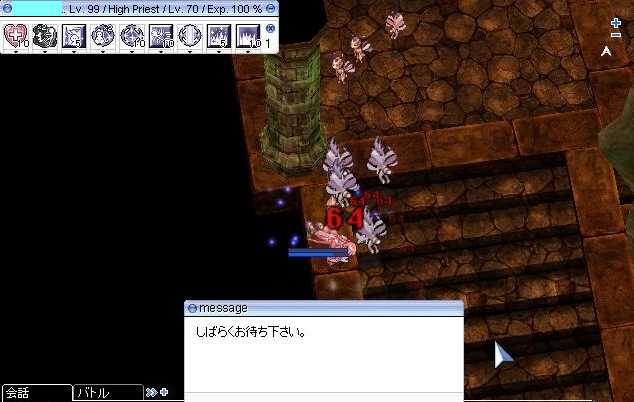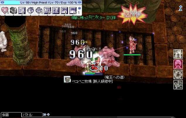 (4月2日(木)の日記です) こんにちはヾ(*'∀')ノ さて今日はいってきました。 エンドレスタワー。 みんな大好きエンドレスタワー。 1キャラ一週間一度しか入れないエンドレスタワー。 実装が半年遅れたエンドレスタワー。 更に3日後に撤去された挙句、次の定期メンテでも再実装されないエンドレスタワー。 終わりがないはずなのにもう終わってますねwww ってやかましいわオラオラオラ(*゚Д゚)≡○)゚Д゚)シネヤプルアァァ!! というわけでいってきました。 火曜日から寝る前にエンドレスタワー(以後ETとします)のスレは 読んでたので大体把握してました。 でもおっちょこちょいなので一度入ったらそのキャラは一週間は 入れないというのだけ見落としてました(ノー`) MMOBBSのETスレから 自分メモ用に転載転載。 ・アルベルタ右下(215,76)付近のNPCからミスティーアイランドに移動できる ・島にある"塔の守護石"でPTLがダンジョンが生成できる。順番待ちあり。 ・ソロPTを作れば1人でも潜入可能 ・一度入場した「キャラ」は1週間入場”不可能” ・鯖キャン、リログ等でも同様に入場不可能になる ・入場制限のかかったキャラと同垢の別キャラは入場”可能” ・デスペナ有り、シーズと違い死亡後セーブポイントには戻されない ・闇の灰はPTMなら全員貰える 闇の灰は取引は不可だが倉庫経由で同垢の別キャラへの移動は可能 闇の灰を使う場所は1F入ってすぐの上側の松明NPC 闇の灰は使った人のみ指定階へ移動可能。 ・MVPも含めドロップ、経験値有り 30Fのペクソジンのみ、MVPでもBOSS属性でもない同名別MOBになっている 能力もMVPより若干弱い。スティ可能、ドロップは詳細不明 ・タワー内から、外にいるキャラへ[/invite キャラ名]か ギルド窓の名前右クリック空欄でPT勧誘後、そのキャラはダンジョンに入場可能になる。 ただし1Fから追いつく必要あり。 使用不可スキル、アイテム テレポート(※)、インティミデイト、アイスウォール、スパイダーウェブ、アブラカタブラ、太陽と月と星の感情 ※ 「あなたに逢いたい」など、テレポート系機能を持つスキル含む ハイローゾイストカード、アゾートが効果を発揮しない。 ハエの羽などテレポート機能を持つアイテムも使用不能 1階 ポリン5 ドロップス5 ポポリン5 マーリン5 メタリン15 マスターリング1 2階 子デザートウルフ10 デザートウルフ20 さすらい狼1 3階 スケルトン5 パイレーツスケル5 ソルジャースケルトン5 スケルワーカー5 アーチャースケルトン5 4階 ホーネット5 ロッカー5 アルゴス5 アルギオペ15 ボーカル1 5階 ビックフッド サスカッチ レイブオルマイ エドガ1 6階 プパ5 ペコペコの卵5 盗蟲の卵5 ドラゴンの卵5 7階 ファミリアー15 ドレインリアー15 エクスプロージョン15 ウィレス15 8階 クルーザー15 銃奇兵15 9階 スタポ10 ゴーレム15 オブシディアン15 10階 ホーネット20 ジャイアントホーネット25 ミストレス1 11階 ラフレシア15 老人参15 フェアリーフ15 ドリアード15 12階 パンク25 デーモンパンク25 13階 ムナック10 ボンゴン15 ヒェグン15 14階 オークウォーリア5 オークアーチャー10 ハイオーク15 オークレディー10 オークベイビー5 15階 蟻の卵5 アンドレ15 ピエール15 デニーロ15 マヤパープル マヤー1 16階 レイドリックアーチャー10 オークアーチャ10 ガーゴイル10 アーチャスケルトン10 17階 槍ヒルウィンド5 ストラウフ15 半漁人10 バフォメットJr10 18階 タロウ10 クランプ25 19階 デビアス10 メガロドン10 フェン10 ソードフィッシュ10 20階 パイレーツスケル50 ドレイク1 21階 赤プラズマ5 青プラズマ5 緑プラズマ5 紫プラズマ10 黄プラズマ10 22階 マンドラゴラ15 ヒドラ15 フローラ15 マスキプラー15 ドラセラ15 ラフレシア15 23階 ペノメナ15 ソードフィッシュ10 ヒドラ5 マルス10 オボンヌ10 24階 ジャック10 ジェスター15 ジョーカー15 25階 九尾狐15 月夜花1 キャットナインテール15 26階 ウィロー10 エルダーウィロー5 フレイムシューター10 ウドゥンゴーレム10 人面桃樹10 ジビット10 27階 ロータージャイロ? ゴブリンライダー? パンツァーゴブリン ゴブリンアーチャ10 28階 ククレ10 ペスト15 ネレイド15 アクラウス30 29階 ハイローゾイスト10 一反木綿10 ダークフレーム10 ウイスパー10 ルード5 キューブ5 30階 天仙娘々30 ペクソジン1(配置ミスなのかMVPではない) 31階 アイアンフィスト15 ギグ20 アルギオペ10 スコーピオン5 32階 毬ゴブリン 槌ゴブリン 斧ゴブリン 鎖ゴブリン 剣ゴブリン ゴブリンリーダー 33階 毬コボルド 槌コボルド 斧コボルド コボルドリーダー 34階 ウィスパー 巨大ウィスパー 35階 パーメットタートル ヒートタートル フリーズタートル タートルジェネラル 36階 アリゲーター グリーンイグアナ アノリアン 37階 アラーム クロック 時計塔管理者 38階 ライドワード デスワード 39階 小龍舞 ヒェグン ミョグェ 天仙娘々 40階 スノウアー アイスタイタン ハティー1 ストームナイト1 41階 クラベン 42階 ホード サンドマン スティング スリーパー 43階 スネイク アナコンダク サイドワインダー メデューサ 44階 サベ