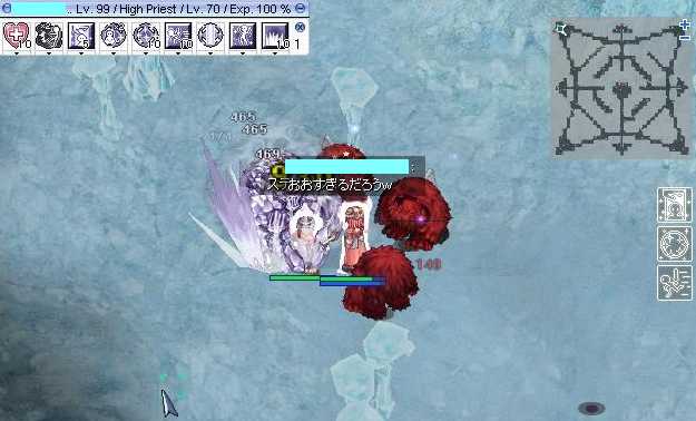 (6月6日(土)の日記です) こんばんはヾ(*'∀')ノ ある会社Aがありました。 その近くにはA社に騒音やちょっかいだしたりで 迷惑をかけてるB社がありました。 少なくともA社にはB社の人間・もしくは社ごと 嫌っている人間がいました。 A社は人も少なりつつ士気も下がり気味だったのですが ここ最近新たな目標もできそれに向かって みんなが働き出しました。 そこに現れた休職していたA社の人間、A社を批判し B社から人を連れてきます。 その人間はすぐまた休職するというのに。 もちろんB社の人間は今までのことに対し 何も謝罪もありません。 さも当然のように休日のイベントにも参加してきます。 それによってA社の人間は('A`)ってなってるのに 過去にも似たような事案をこの休職してた人間は 起こしてるのに全然成長してないと思います。 しかしもはや最近では馴れ合いのような関係に なっておりどうしようもない状況です。 みんながみんな「みんなでなかよく」ってのが 好きなわけじゃないですし 人には好き嫌いがあって当然と思うのですけどねぇ。 自分達の組織に問題があったとき その問題に立ち向かおうとせず人を連れてきたり (経営コンサルタントなどの専門家を除く) するのっては下手中の下手ですよね。 っていうある会社のお話。 まぁ嫌なら辞表提出するしかないねヾ(*'∀')ノ さて今日のRO 今日は久々に土曜日のお昼にログインできましたヾ(*'∀')ノ Mリーさんと少しお話してDフさんをからかいました。 その後はMリーさんの 70ローグさんと氷Dへ狩りへー。 ムスカ盾のお陰でかなりいいです。 変に無形盾や呪いセット・石化セットよりいいかもですね。 相手のATK低い場合ね。 氷D3Fで人が少なめの時間に狩ったのは 初めてだったかもですけどゲイがすごいおおいのですね。 SSには写ってないのですけどMリーさんの上にもいたそうです。 最後はMリーさんを落としてしゅ・・ な・・んだ・と・・ 避けただと・・・ 流石高フリー。 やっぱりペア狩りは楽しいですね。 大人数は大味になるし EXP稼げる狩場やスリルある狩場ならいいんだけどなぁ。 もちろんMリーさんを殺してないですよヾ(*'∀')ノ そして夜はETです。 今回はノリでDLとバフォまで倒せました。 私自身の反省点はシーカー部屋でDフさんに アスムかけようとしてたらSP吸収されてたことと ニュマどうしてもきらしてしまうことです。 だがしかし、ニュマ一度やってみたら 大変なことが分かるぞヾ(*'∀')ノ どんな仕事でもそうだけど。 他の派手なエフェクトで見えづらく やたら動く人もいるんだよ(,,'Д') 今度からはブラギの内側四隅と できるならその真ん中の設置しよう。 そうしよう。 そして今回のETで初めて12人超過しました。 雰囲気的にもう2PCで灰集められそうにはないですし 2PCとは言え今まで支援出してきたので そろそろ出したいキャラでいこう。 にしてもなぁ93セージはどうしようかなぁ。 ETでの出番あるのかなぁ。 夜のギルドだと「みんなが色んな職を」だから 私の1キャラレベル上げ専念とベクトル違いすぎるから 教授上げたいモチベのときにだせるか微妙なんだよなぁ。 どの職でもいえるんだけどなぁ。 今日はここまで じゃあの(*・ω・)ノ
