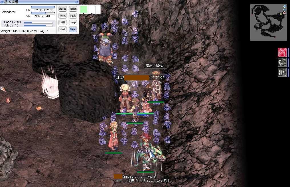 こんばんはヾ(*'∀')ノ 私は行きたいイベントとかあるととりあえず 携帯とか手帳に書いてます。 それゆっくり見る暇もないくらい忙しかったり 誰も誘えずにいけないことが多いのですけど(ノー`) で、そういうイベントってする前にTVで少し告知するタイプや 開催中でもバンバンCM流すやつとかに分かれるのですよ。 2,3日間のイベントは前者で1,2ヶ月の博物館とかは後者ですね。 今年行きたいイベントがあって今日携帯のメモみたら22日に終わってました( ゚д゚ ) http://www.city.nagasaki.nagasaki.jp/hansen/ 長崎港であってた長崎帆船祭りです。 長崎なら朝から出れば一日中楽しめそうだったけど 期間をすっかり忘れてたね(=`ω´=) しかもこれメモった時は一ヶ月以上前にメモったのに(=`ω´=) 来年こそは絶対行くぞーヾ(*'∀')ノ 誰か一緒に行こうじぇ。 さて今日のRO 今日のギルド狩りはペコ牧にとって忘れられないギルド狩りになることでしょう。 Rによって修正入るんじゃね!?と思われるくらいに強くなったSPPと 民$のメランコリーのスキルを組み合わせることにより トール火山のインプとカーサが一確になります。 そしてメランコ出来るのが私しかないという(*゚∀゚)=3ムハーな状態。 座ってるのはサボってるわけじゃないのですよ。 いつかはしたかったギルド狩りによる一般的な要職の育成。 Y-リさんとお互い拳聖を育てあって秋ぐらいからやり始めていこうと 話してましたがRのおかげでかなり早い段階で取り組めてます。 ギルド狩りの時だけではなく人さえ揃えば突発的にいけますねヾ(*'∀')ノ 構成とか色々つめていかないといけない部分もありますので それは今度Y-リさんと話し合ってこことペコ牧伝言板に書いてもらおう。 そしてこの次の日、民になったMリーさんによって 私のメランコ天下は終わったのでアール。 まさにアールによって味わった2時間天下なのでアール。 今日はここまで じゃあの(,,'Д')ノ |