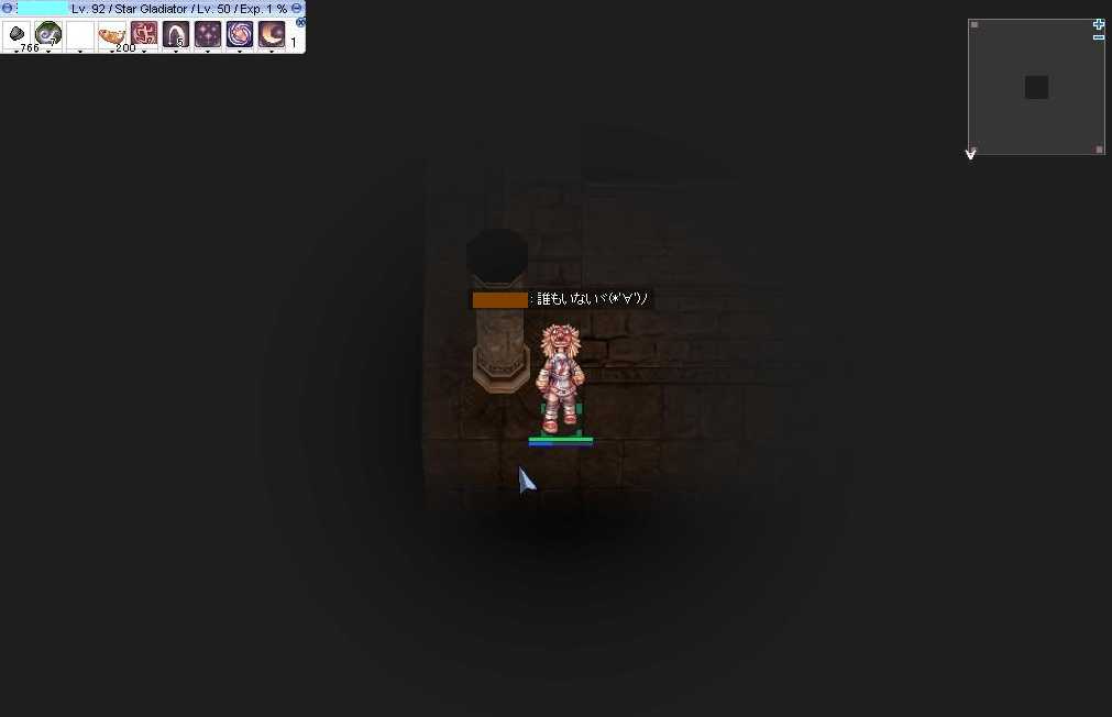 (6月4日(金)の日記です) こんばんはヾ(*'∀')ノ 更新頑張るぞといってから放置しちゃってたです(ノー`) さて更新頑張るry 早速ROへ 平日の夕方にログインしたら このお座りポイントには誰もいませんでした。 他の三箇所にはいるんでしょうけどね。 そういえばほとんどの人がPD3Fから4Fに行く時は 右下に向かうのは何故なんでしょうねぇ。 今日は狩り中のSSはないよヾ(*'∀')ノ 拳聖でリンカーとBSに吸わせただけだよヾ(*'∀')ノ 今日はここまで じゃあの(・ω・)ノ