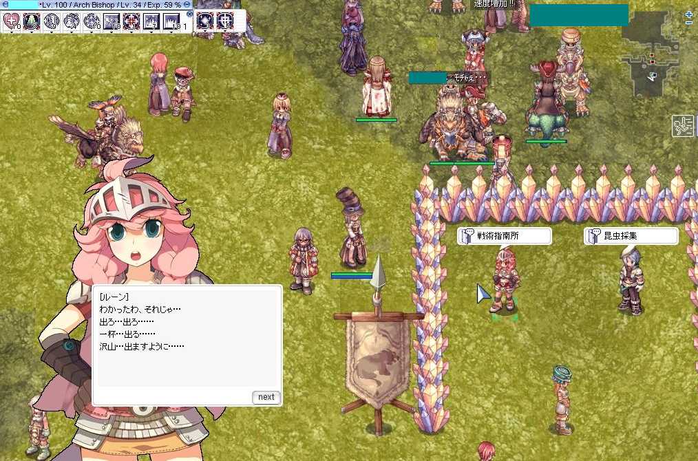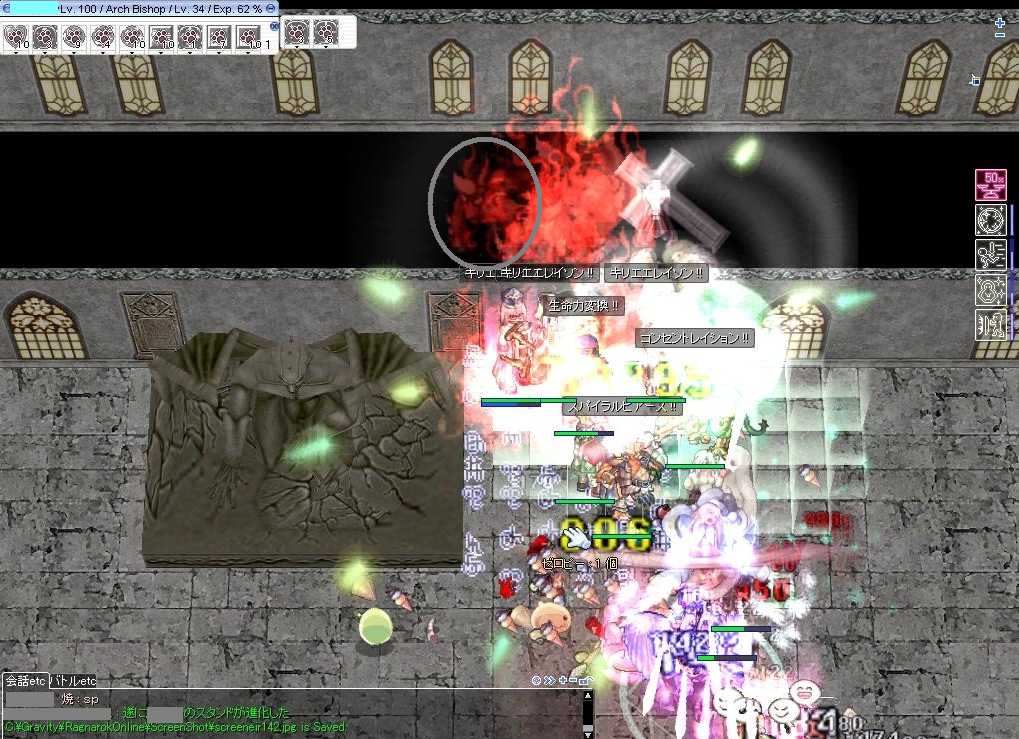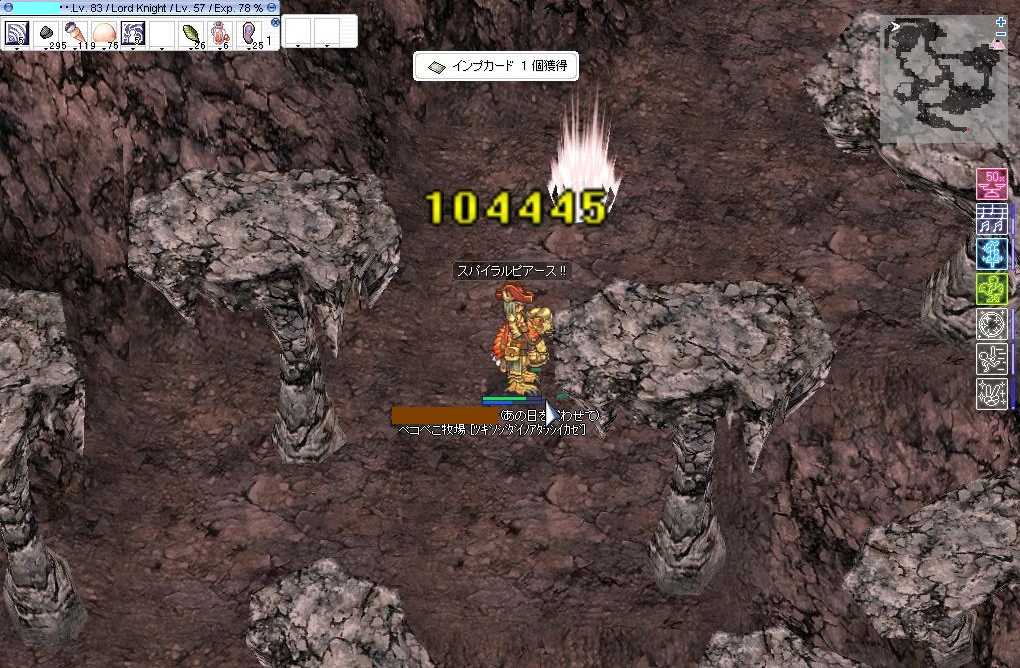 (9月4日(土)の日記です) こんばんはヾ(*'∀')ノ 私が好きな清涼飲料水のシリーズ、キリンの「世界のキッチンから」 から新しいのが出てました。 このアップルモーアっていうやつですけど そこまで美味しくなかったです(・э・) 多分これはあれや 1個目がすげぇ美味しくて 2,3個目もかなり美味しかったので期待持ってるからや。 初めから期待など持たなければ失望もしないと思ってたら そんなこといってたら新商品なんて買いませんでよね(ノー`) さて今日のRO 今日はギルドに体験期間中で新しい人が入りました。 Y-リさんがラヘルで補給していると おしゃぶりをばら撒いていた闇葱さんです。 これをおしゃぶりの出会いと名づけよう。 ギルド狩りはSバちゃんのリザごっこだよヾ(*'∀')ノ 詠唱バーみると右下のG-くんより私のほうが早そうだね。 詠唱妨害されなければね(ノー`) その後は二次会でポリンDにいってきました。 30分ほどだったですが楽しかったです。 SSは撮るほどゆっくりできなかったよ(ノー`) 今日はここまで じゃあの(ノ・∀・)ノ